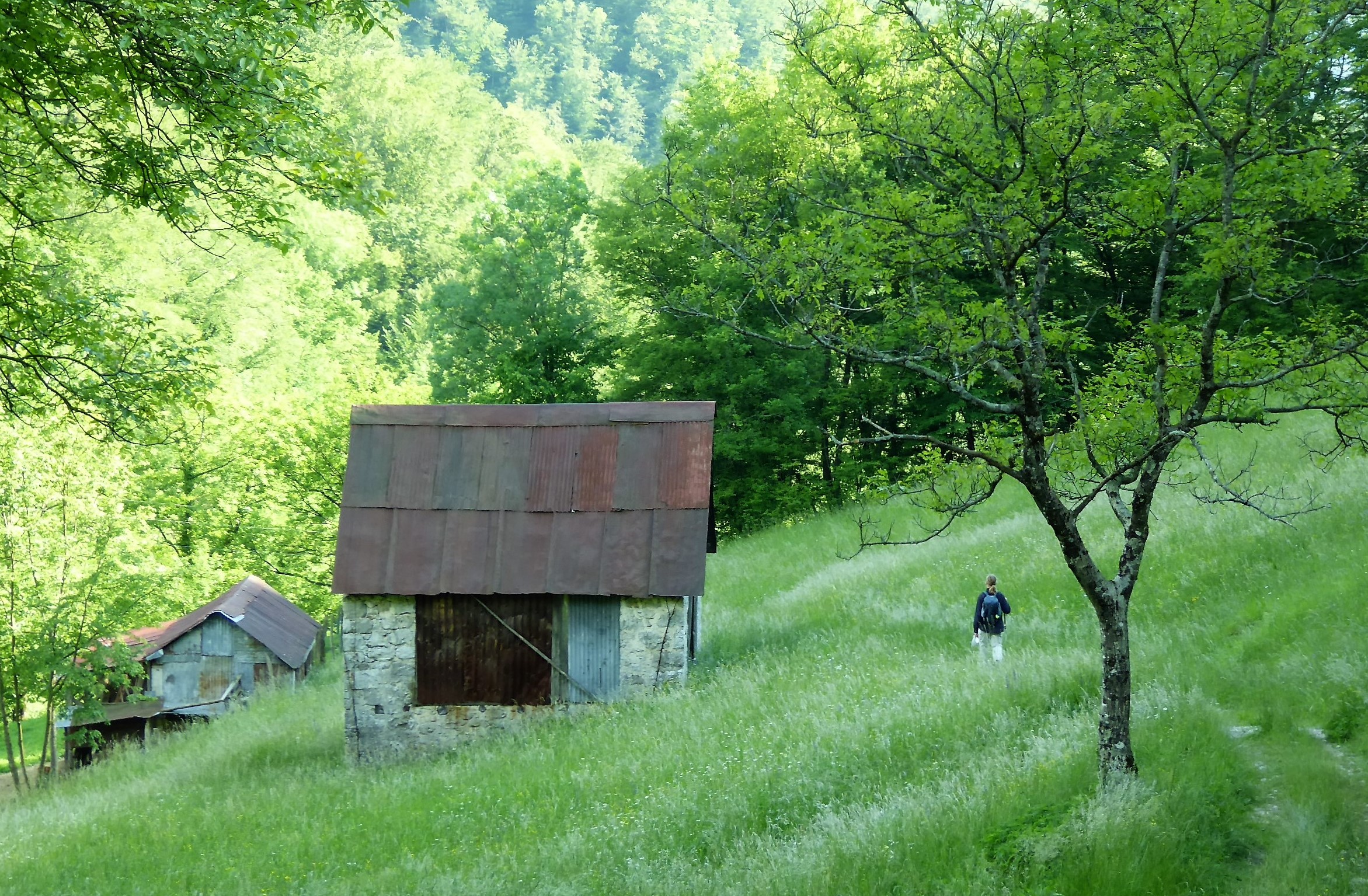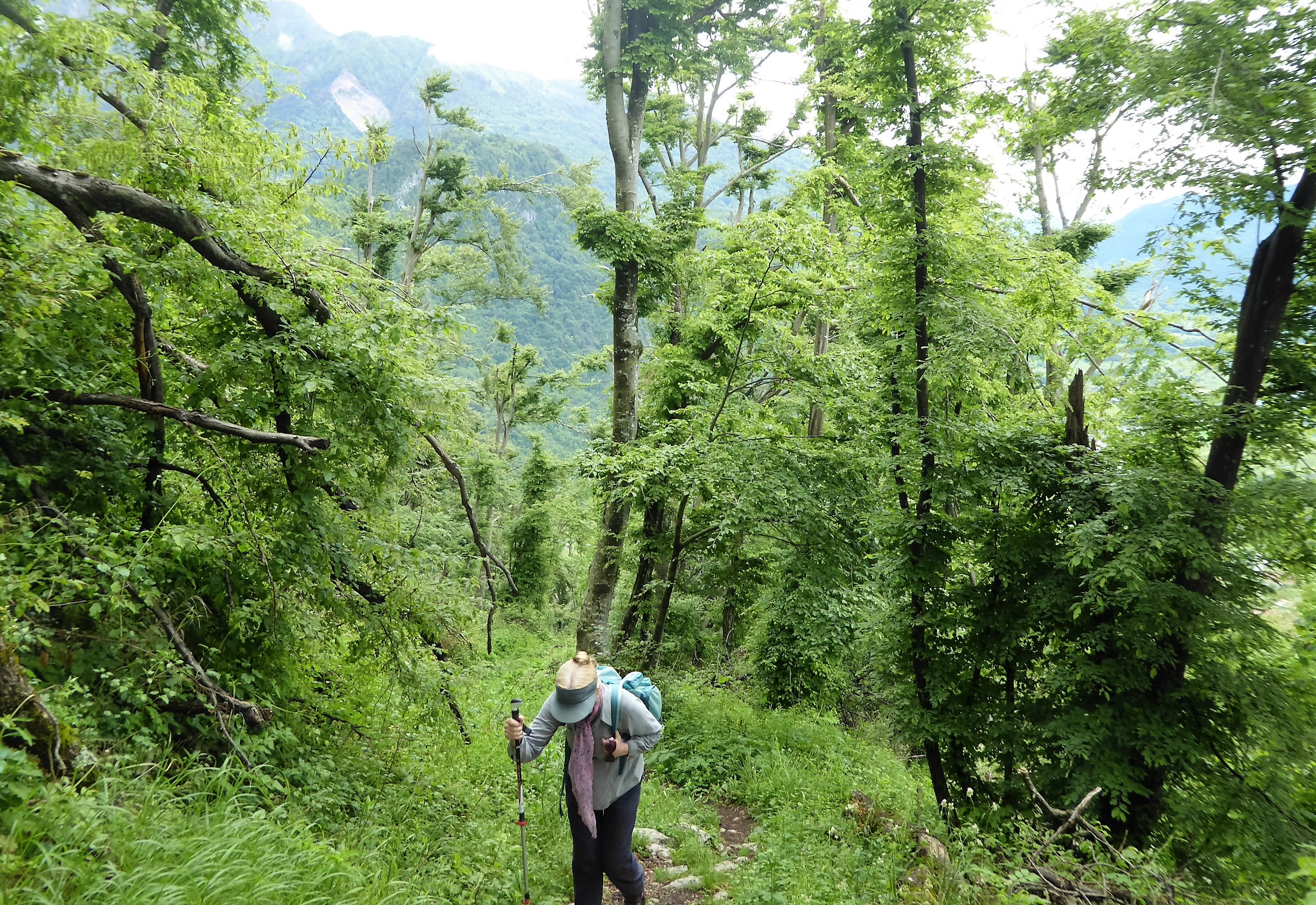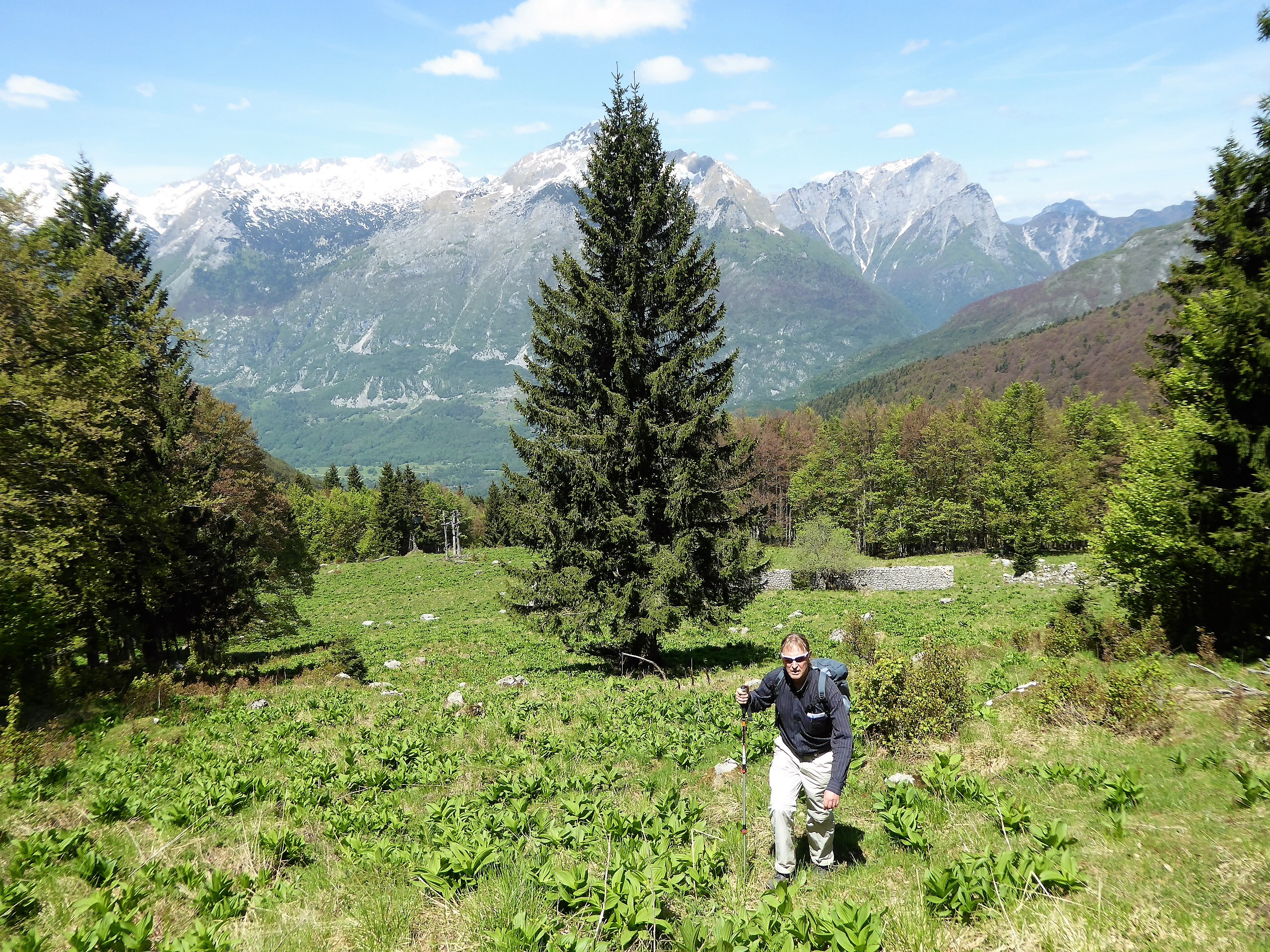 Today heavy rain which prevented us from ascending high into the mountains. We walked through the lower areas, densely covered in tall trees and undergrowth. On this side of the mountains – we are close to the Austrian border – there are no pine forests – very different to the Tirol, in Austria, which is very close to this part of Slovenia. Here the mountains are covered in wilderness forest, a tight-knit tapestry of broad-leaved trees, big and small, and often, dense undergrowth, sometimes akin to rain forest. So the country here is very lush, very green. I asked about the reasons for the difference here with the Tirol and he told me that on this side of the mountains, it faces the Mediterranean and is generally speaking warmer than in Austria. Well I don’t know about that; the mountain tops and ridges are heavy with snow and I can imagine it getting pretty cold here in winter.