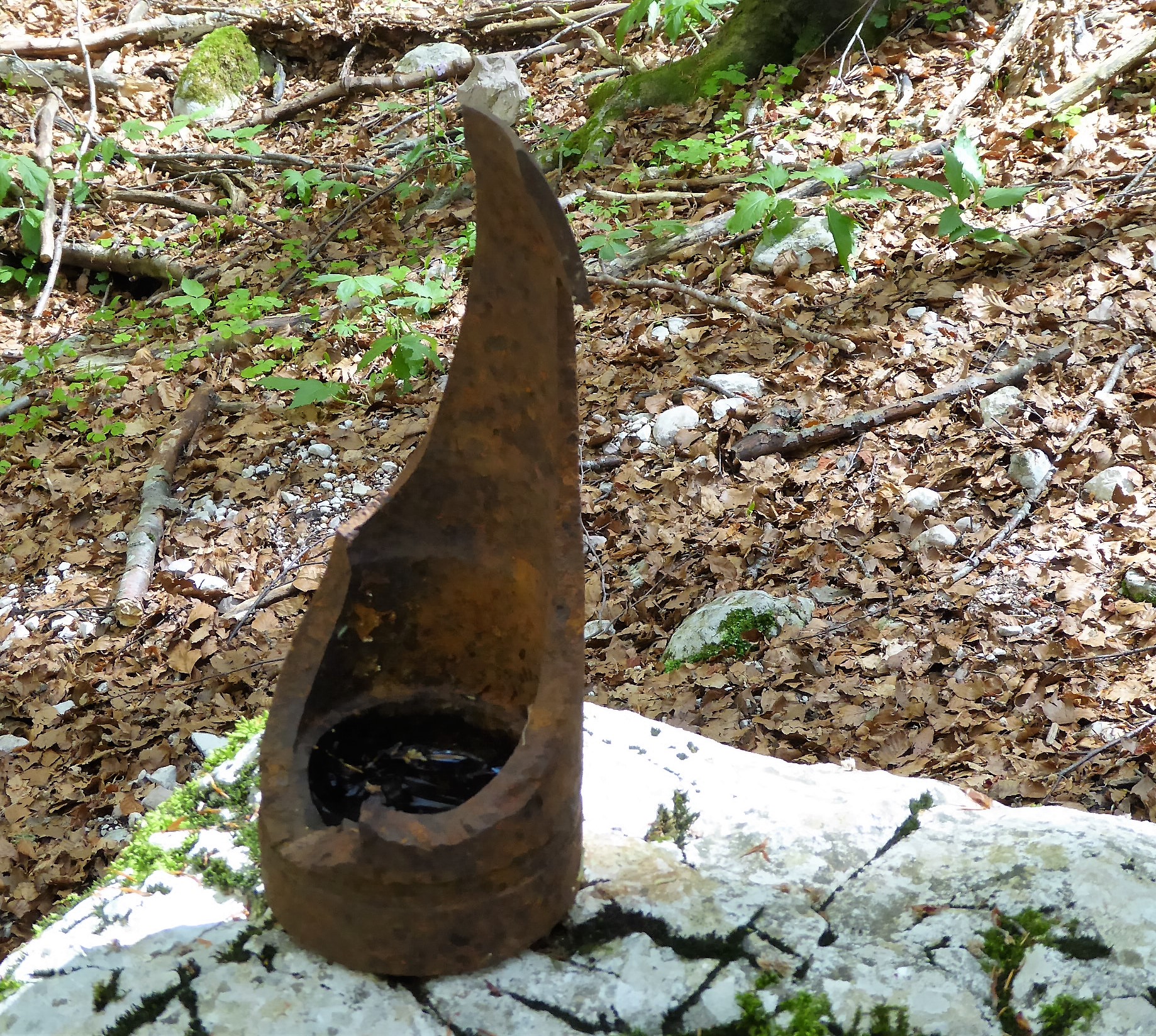 Yesterday was a long day – 11 hours. The weather was perfect for ascending a mountain. This took 4 hours, The trail was well-marked. Most of the way it was under a canopy of trees with dappling sunlight on a bed of leaves. At one point, near the top, we came to a rusted iron shell from the First World War placed on a rock. Mountain peaks, symbols of serenity and timelessness, once reverberated to the sounds artillery shells and machine guns. There was a charnel house in one the most beautiful places on the planet: a grim realisation of Joseph Conrads’s richly prophetic novel, ‘Heart of Darkness’.