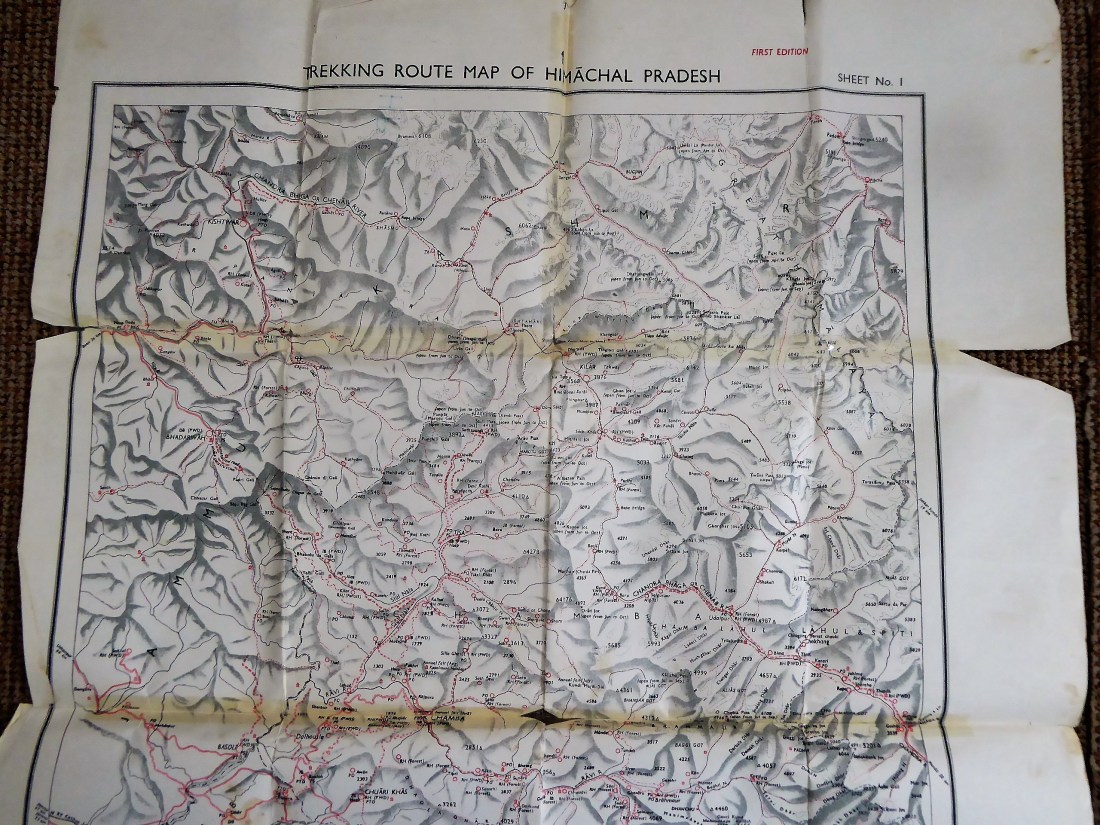 We bought 3 complete sets of maps covering the entire Indian Himalaya; Indian, Swiss and British. Each set of maps was different and often indicated different trails. None of them was in any way comprehensive – let alone consistently accurate. From our three sets of maps, we got a good idea of all of the major trails, where they started, where they went and where they ended up; how many rivers and passes they crossed and so on. But we also knew from experience that in between the trails indicated on the maps, there were other trails, minor trails used regularly but by less people – and which often went through tough but exciting terrain.