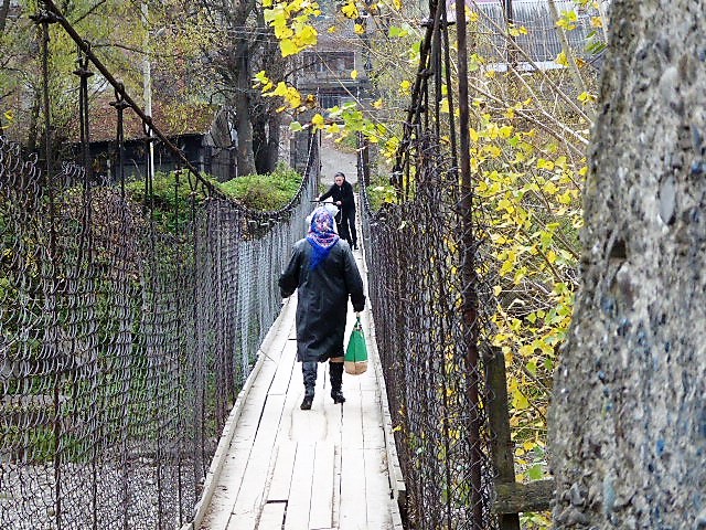 Crossing the river on the footbridge is a precarious business, especially for the elderly.