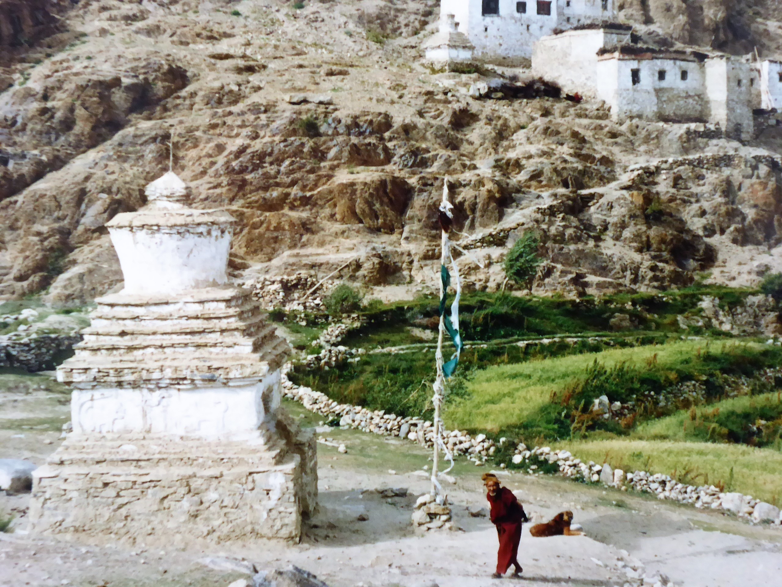 Zanskar was one of the five Tibetan Buddhist regions – the others being: Ladakh, Lahaul, Kinnaur and Spiti. Sparsely populated by people who spoke a Tibetan dialect and worshipped the Dalai Lama, these regions were left marooned on the Indian side of the border after the Indo-Chinese war in 1962. Their traditional way of life had remained unaffected by the geo-politics of the region. They lived in their villages of flat-topped, mud brick houses, irrigated their little barley fields with glacial water from the high peaks and ploughed them with yaks and sent their sons to the white washed monasteries perched on top of cliffs or ridges. Our journeys into these areas – carrying all our own equipment and supplies (we never used horses, porters or guides) spanned a period of 15 years – until 2002, when we went on our last trek.