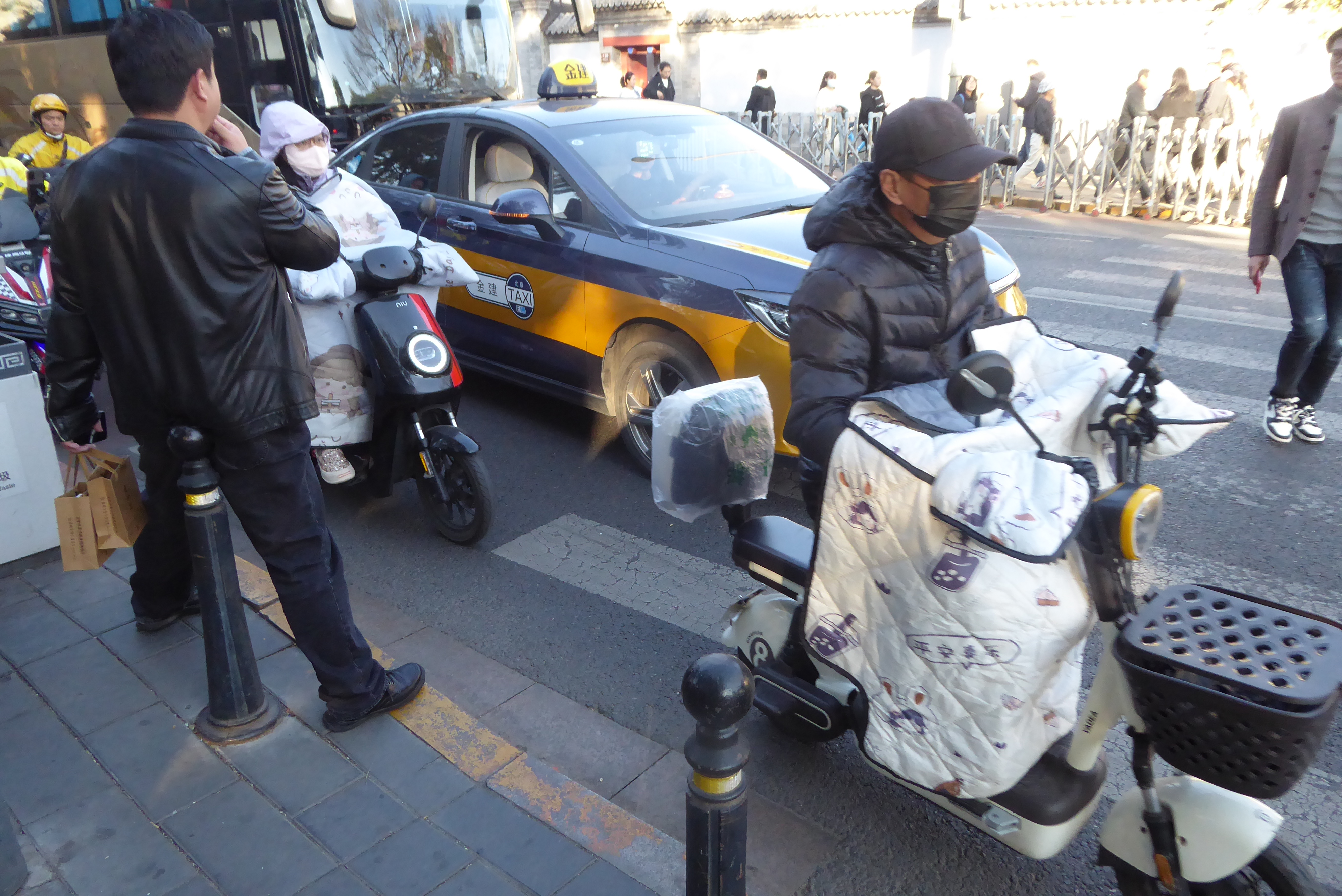 Our journey started in Beijing. It was November and cold. A common sight on the roads and backstreets was motor cyclists with heavy cloth at the front of their machines to ward off the cold air..