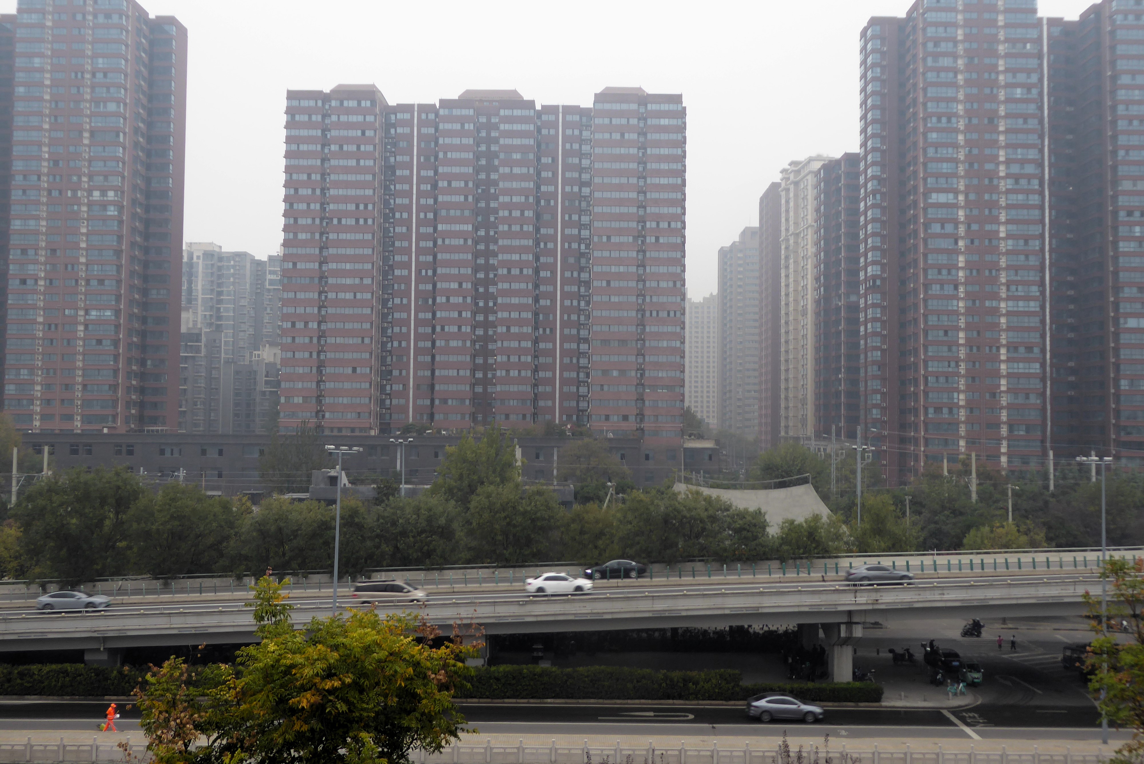 A landscape crammed with high rise apartment towers is the ubiquitious scene greeting the visitor to any Chinese city today. Almost 50% of the cars are electric but air pollution remains a problem (although very much less than a typical Indian city)
