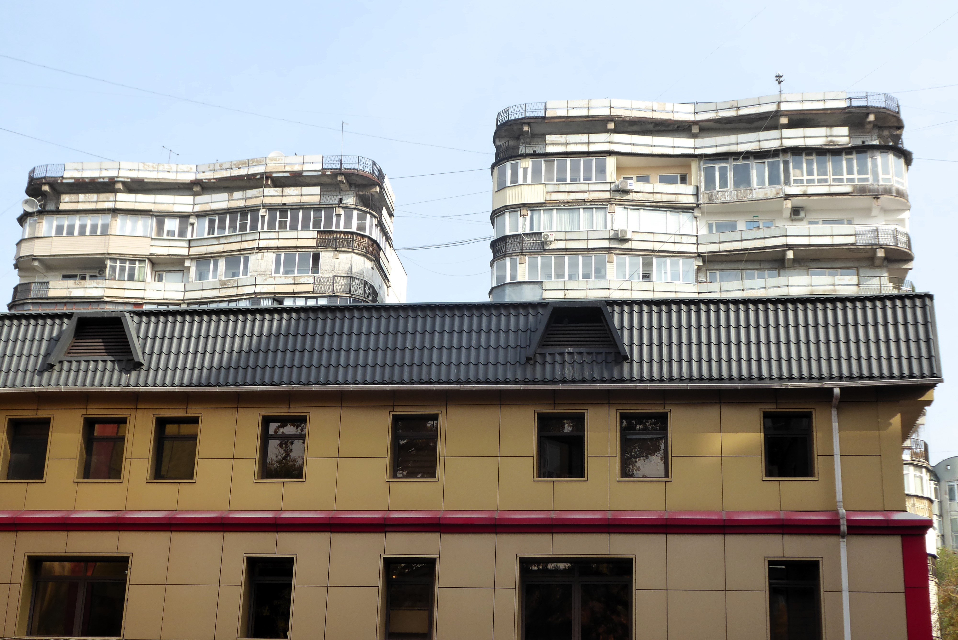 The old and the new; the old apartments built when the country was a Russian colony.