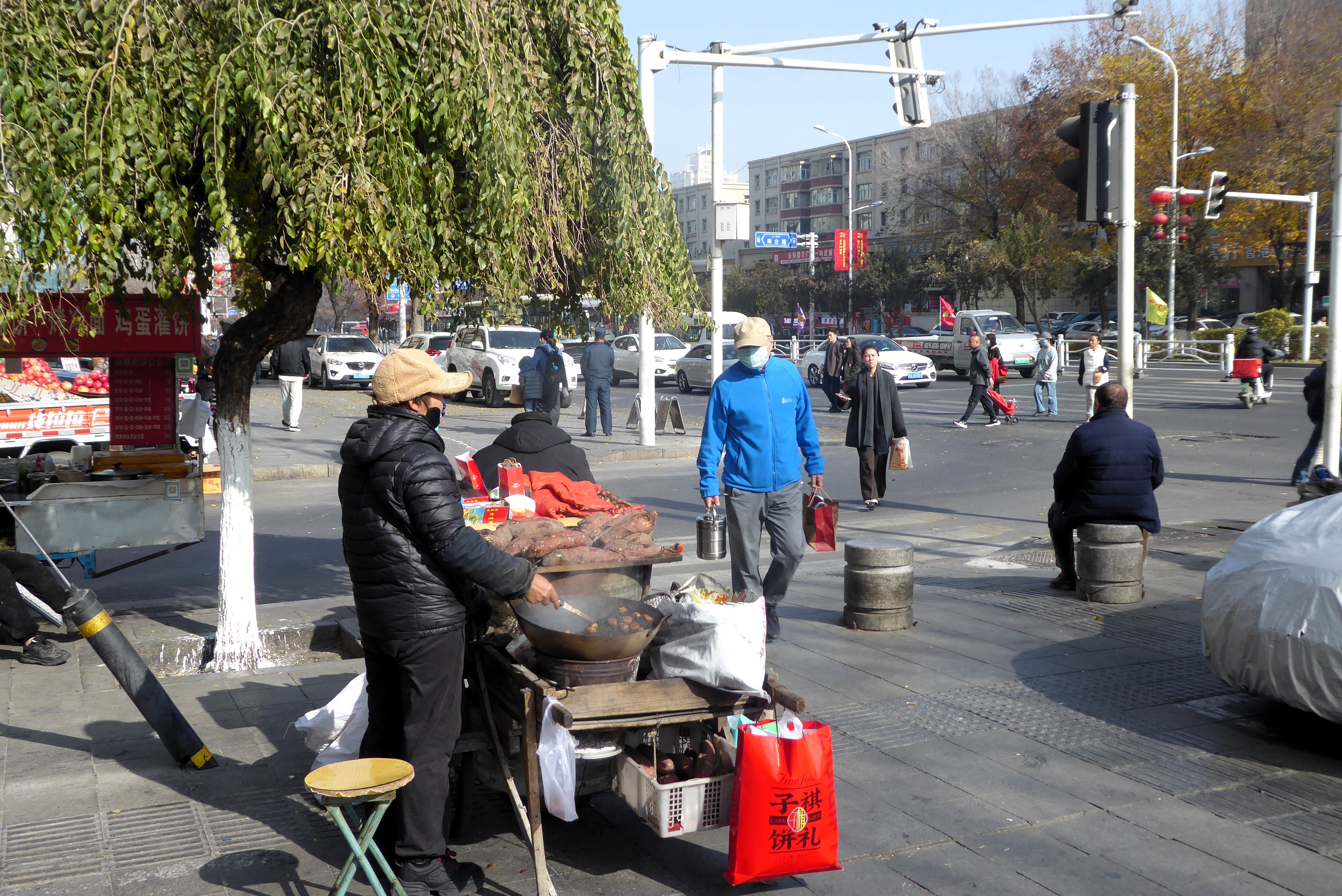 Street life on the pavements of Urumqui where it soon becomes obvious that despite the Chinese Miracle, there are still many people living hard lives