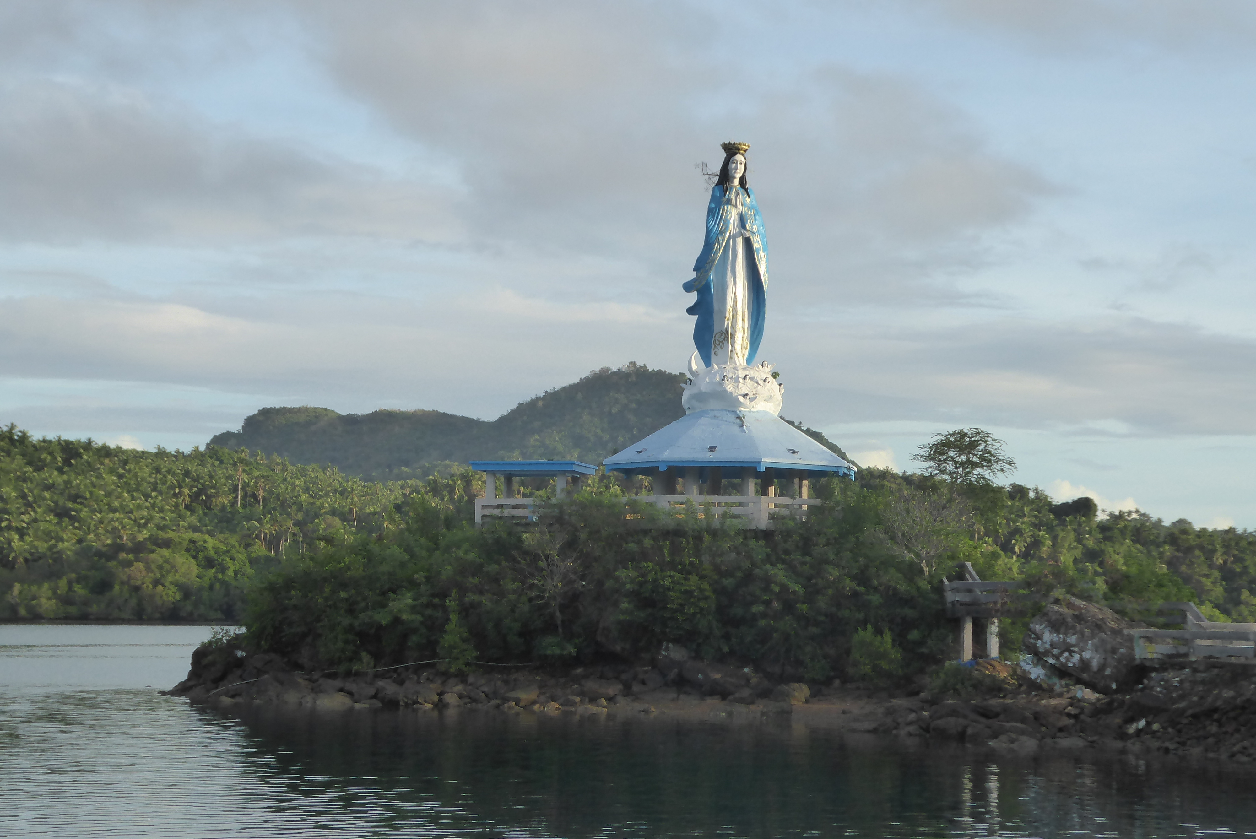 In China, religious worship is banned. In The Philippines, most people are Christians – and its very colourful and flamboyant worship – this beautiful statue of Mary which I saw rising from a small island whilst looking out from an inter island ferry being a fine example.